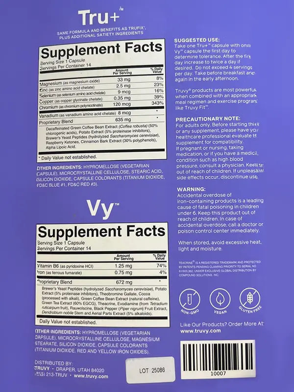 Tomar 1 cápsula de Tru y 1 cápsula de Vy en ayunas